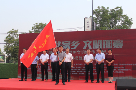 2019617日上午,我公司與邢臺市各行業的30家代表單位共同參加了,由市宣傳部、文明辦舉辦的“同傳一面旗 共創文明城”傳旗活動暨手繪邢臺授權首展啟動儀式。