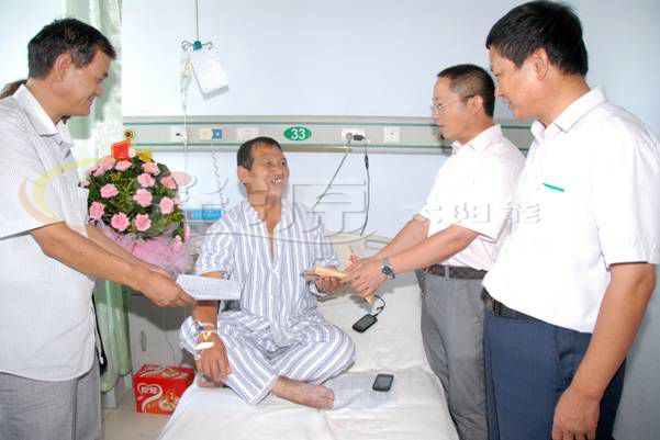 倡議書隨即引起了全體同事的高度關注,公司領導帶頭,廣大員工踴躍參與,紛紛主動捐款,全體員工用點滴仁愛之心,向達師傅傳遞了一份生命的熱度,譜寫了光源人互助互愛的贊歌。8月15日上午公司領導買來花籃、水果和募集到的近2萬元善款到醫院看望病中的達師傅,并鼓勵他用積極的心態戰勝病魔,早日康復!