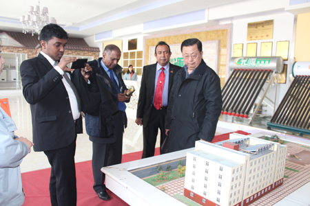 在光源公司總經(jīng)理劉迎波陪同下,斯里蘭卡客商先后參觀了太陽能采暖系統(tǒng)、燃?xì)獗趻鞝t車間、真空管車間和太陽能熱水器車間,觀看了光源太陽能公司視頻宣傳片,雙方進行了友好洽談,溝通了項目基本情況,促進了雙方了解,約定了互訪和進一步洽談等。